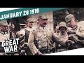 Even though Britain went to war over the violation of the Belgian neutrality by the Germans, the neutrality of Greece seems to be of no concern to the Entente. The military presence on Corfu and Salonika is growing and growing. And even though there is no fighting there, the soldiers have to suffer since general Malaria is taking his toll. In the week of the Kaiser's birthday, the diplomatic tensions between the USA and Germany are increasing and on the Western Front Trench Foot is becoming a real problem.